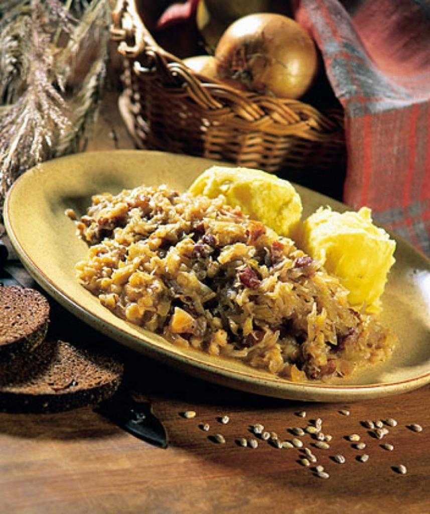 - Свинину, тушеную с кислой капустой.