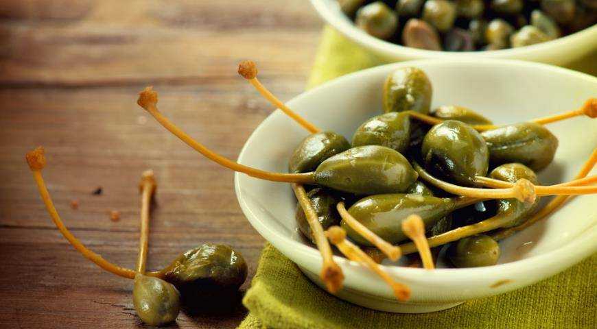 Что такое каперсы в кулинарии: это нераспустившиеся цветочные бутоны, которые собирают и заготавливают определённым способом.