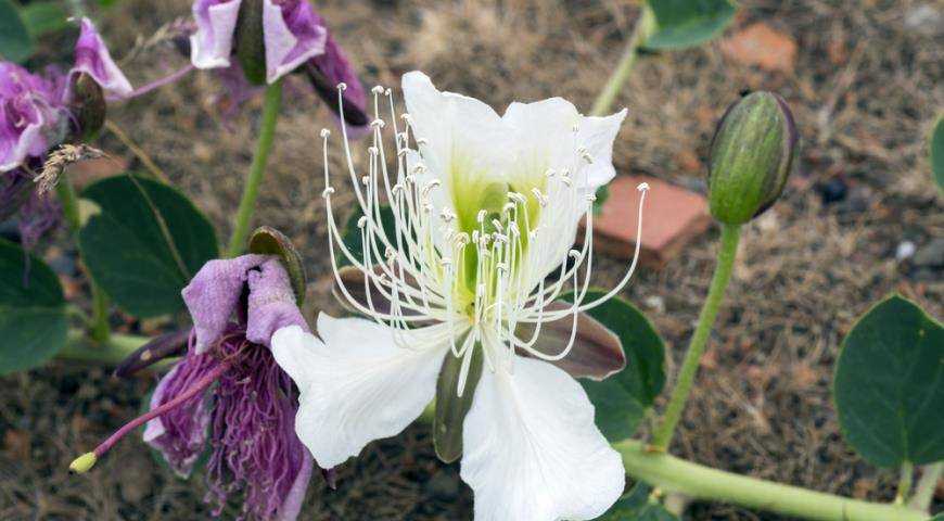 Большинство видит эту пряность в баночках на прилавках магазинов. Но такое знакомство не даёт полного представления о том, что такое каперсы и как они выглядят. В природе это кустарник под названием каперсник. Его двухметровые ветки стелются по грунту, а само растение может укорениться в самой твёрдой почве – даже в скальных породах