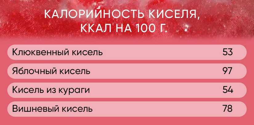 Кисель является высококалорийным блюдом, потому что в его состав входит крахмал и сахар. Пациенты, которые столкнулись с чрезмерной массой тела, могут заменять сладкие напитки из фруктов овсом или использовать лен. Злаки имеют низкую калорийность.