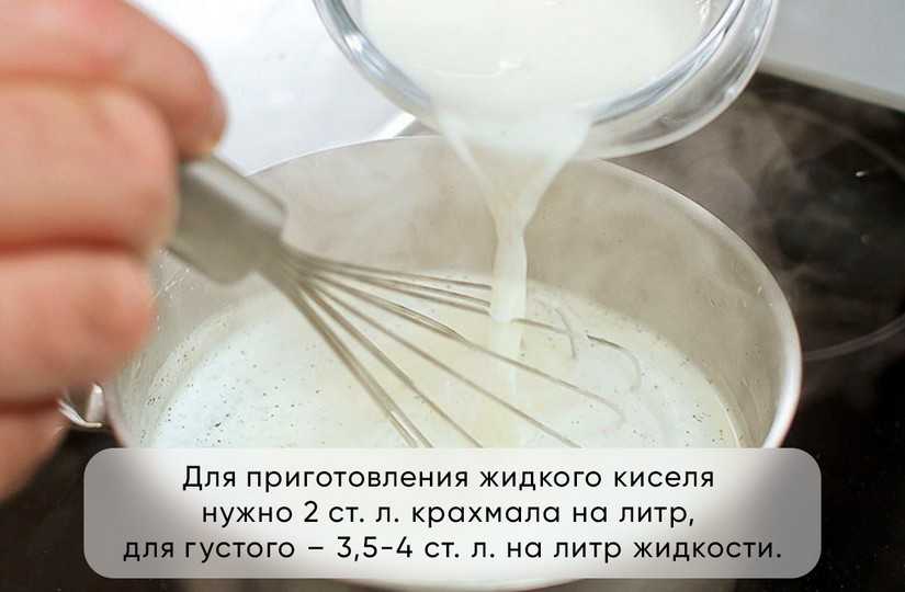 - напиток средней густоты можно получить при использовании 1 чайной ложки крахмала на стакан воды;