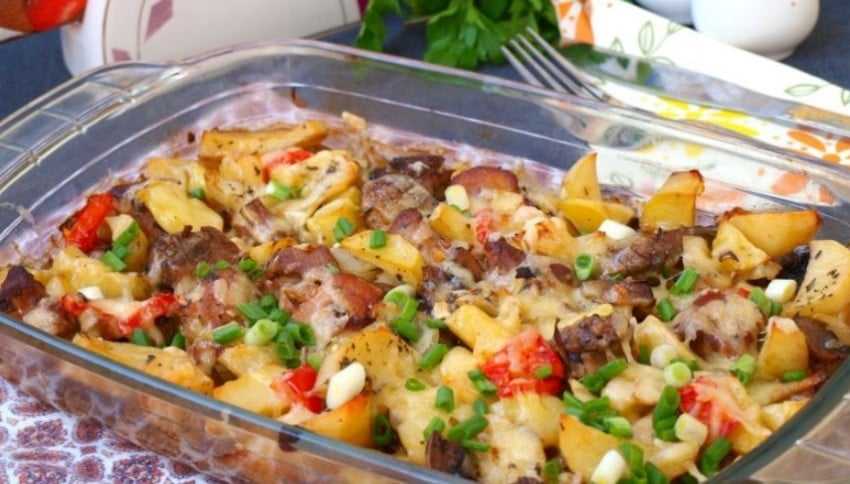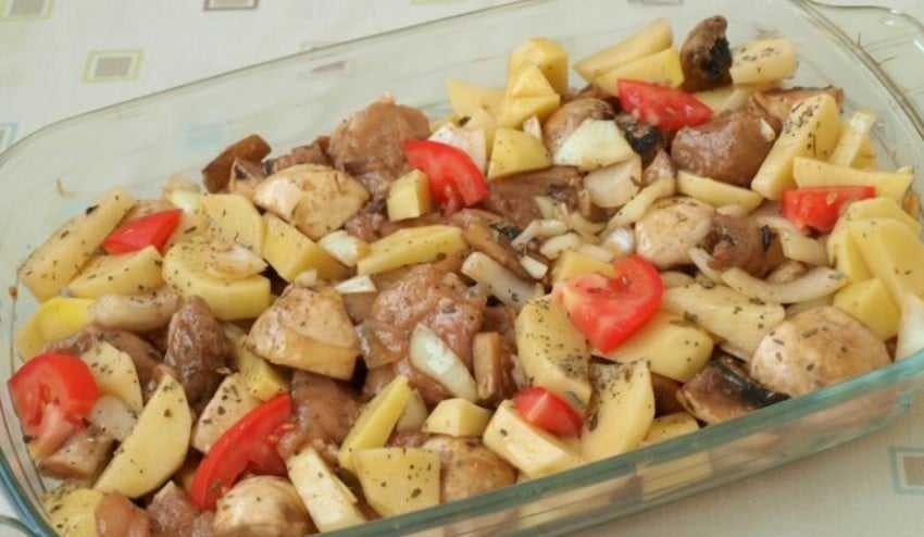 Как потушить шампиньоны в духовке с овощами и свининой?