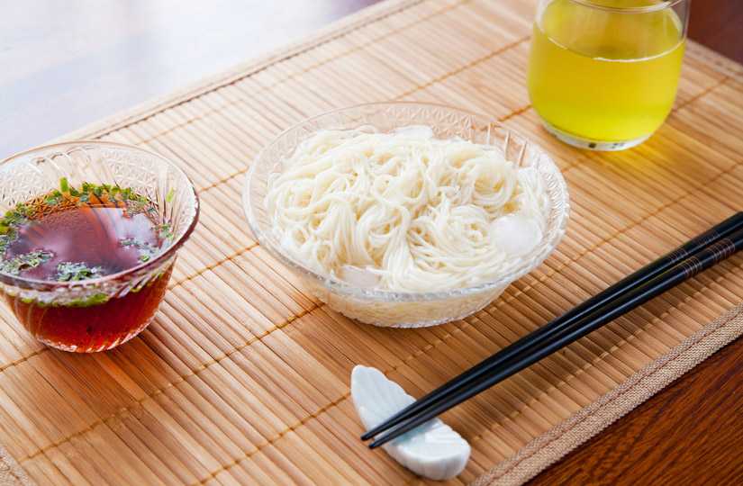 Тончайшая длинная пшеничная лапша белого цвета диаметром 1 мм. Готовится всего 2–3 минуты, затем ополаскивается водой и подается в холодном виде. Часто сомен выкладывают на лед (или добавляют лед в миску с бульоном), а саму лапшу предлагают обмакивать в соус.