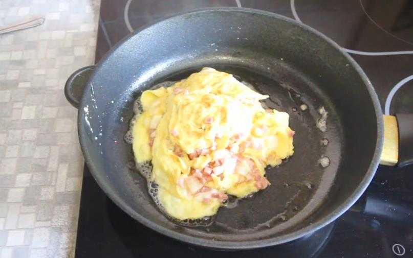 Если же он готовится с начинкой, то она добавляется непосредственно перед тем, как придет время заворачивать готовый омлет трубочкой. Все предварительные процедуры с начинкой, такие как обжарка, тушение и т. д. проводятся отдельно.