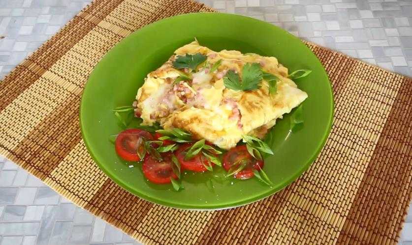Такой русский омлет можно приготовить если у Вас осталось немного каши с ужина.
