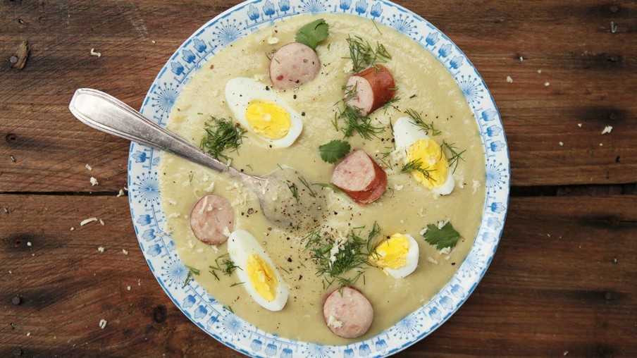 Жур – еще один суп, невероятно густой и кислый, который готовится из отварного яйца и колбасы и считается одним из самых старых блюд польской кухни.