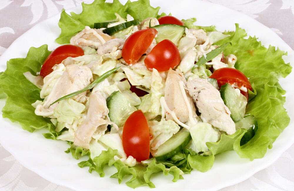 Салат с отварной курицей и овощами